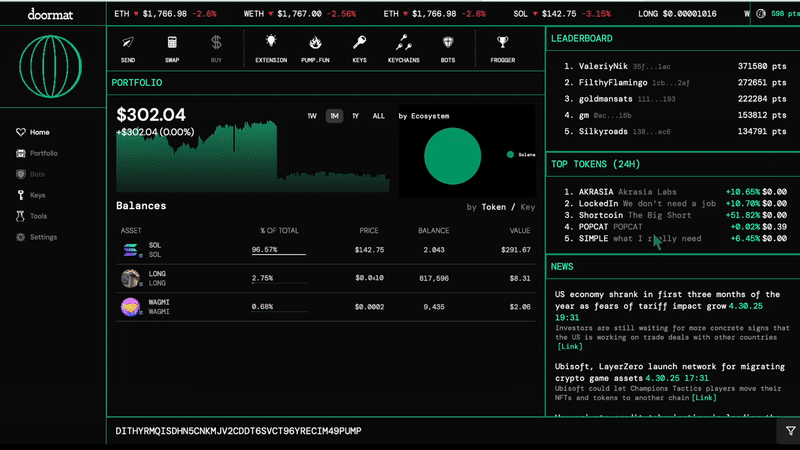 Doormat evolved from an MPC wallet into a full trading terminal supporting Solana and EVM chains, Pump.fun integration, automated trading, and Keychains. The product scaled to 616 alpha users, 8,000+ wallets, $1.9M peak AUM, and $900K in trading volume, validating that power users will adopt complex tools when they meaningfully improve speed, control, and execution quality.