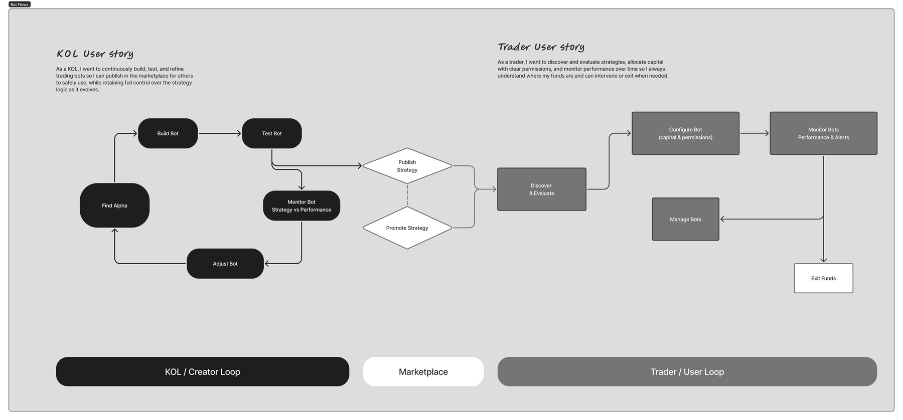 Designing an automations marketplace inside a wallet required aligning creator incentives, maintaining high user trust, and working through technical constraints (like how to determine if a user could run multiple bots on the same key with no issue). The hardest problems were ensuring distribution and healthy marketplace design.Mapping loops early prevented us from overbuilding dashboards and kept the feature grounded in the copy-trading patterns we observed.