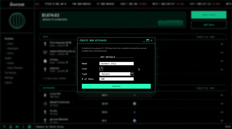 I led the design of the Keychains feature, a system that lets users generate and manage up to 100 wallets as a single execution unit and submit coordinated transactions across them in parallel.This enabled traders to distribute risk, automate strategies, and execute complex positions without external tooling.Challenges