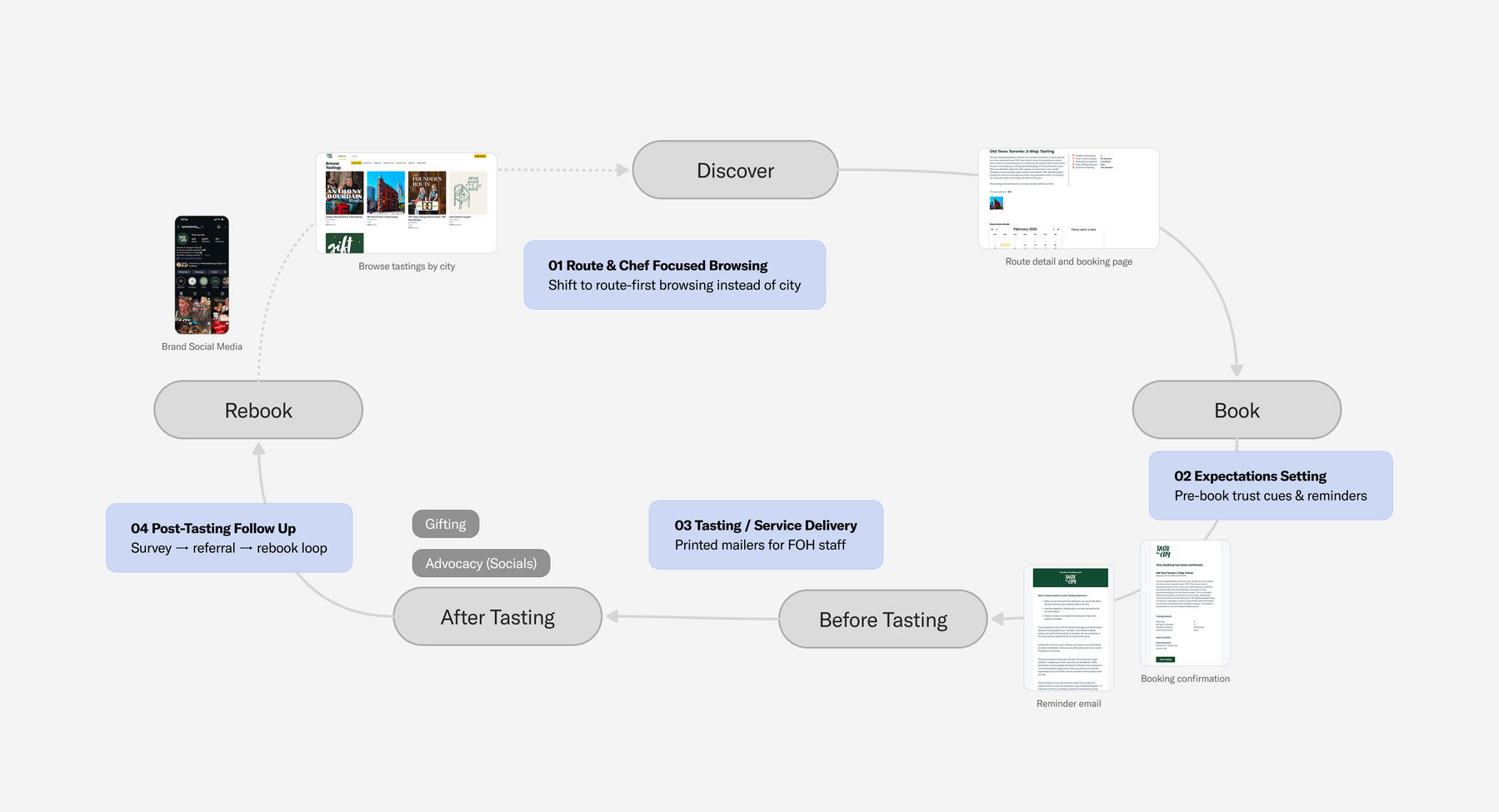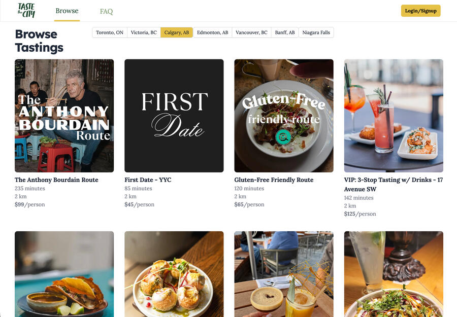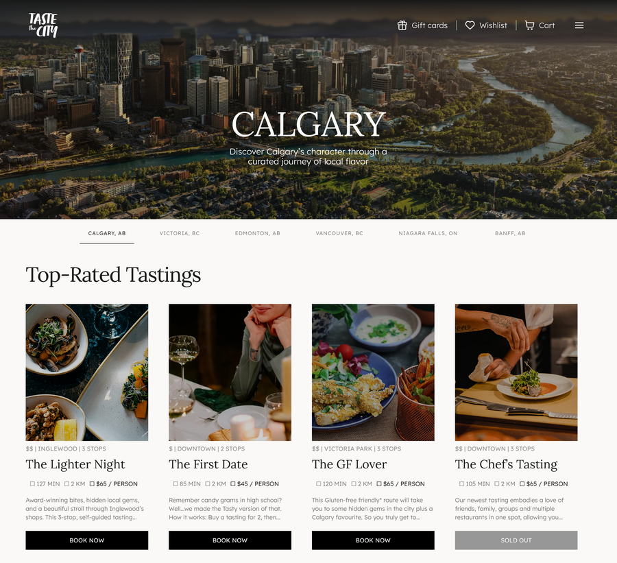 Taste the City is a hospitality marketplace connecting restaurants, curators, and diners through SMS-guided food tours. Content creators curate routes to monetize their recommendations, users book surprise tasting tours, and restaurants get free exposure to new customers.When I started working with the team, their product was already live in over 100 restaurants across Canada and they were generating strong traffic from their social content, but sales lagged. The team was preparing to fundraise and needed to improve conversion using their existing MVP.