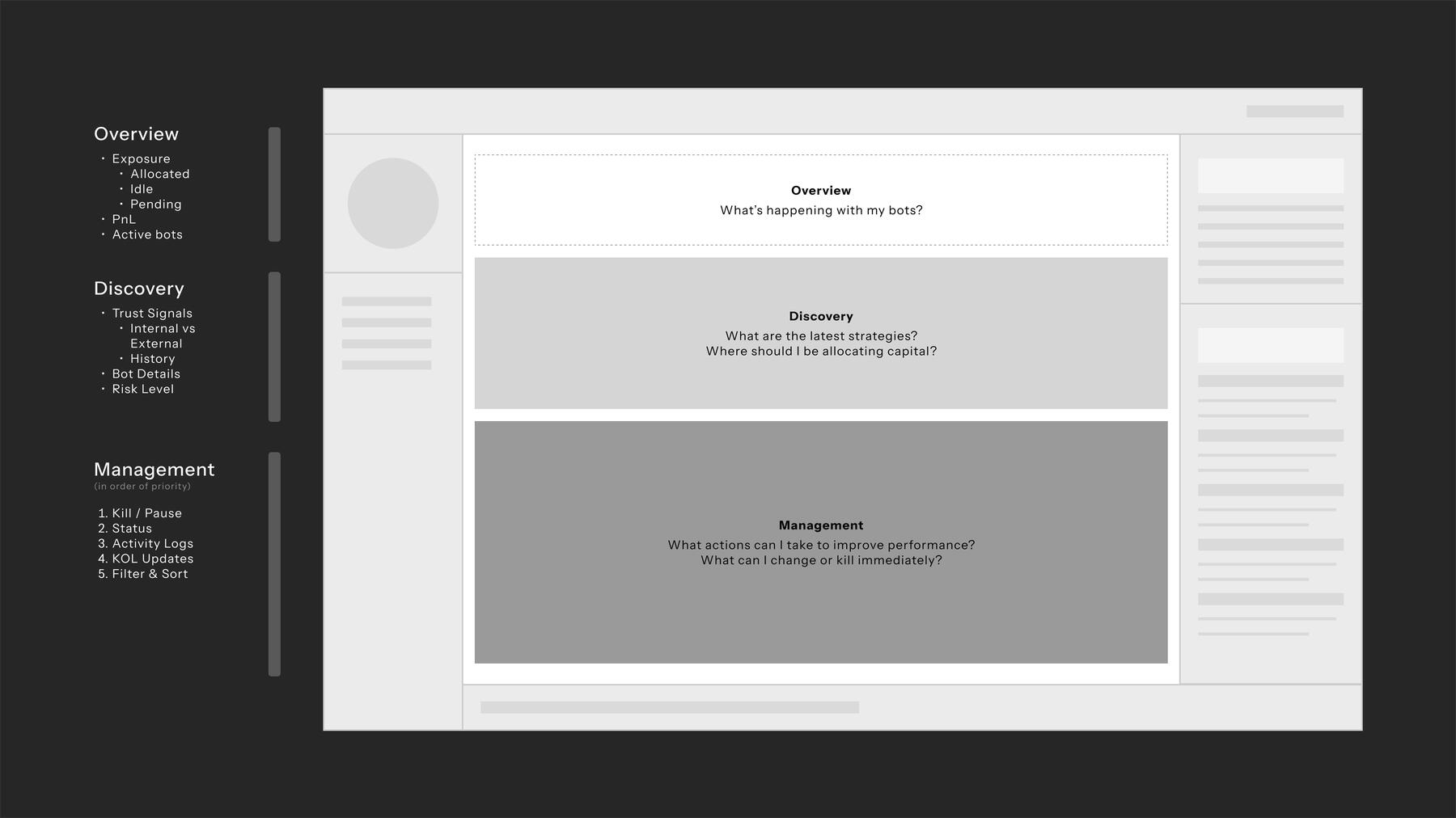 Management: What can I change or stop immediately?This structure directly mapped to the system loops and trust constraints. Rather than building a complex configuration dashboard, we prioritized clarity of capital allocation, status visibility, and decisive intervention controls.
