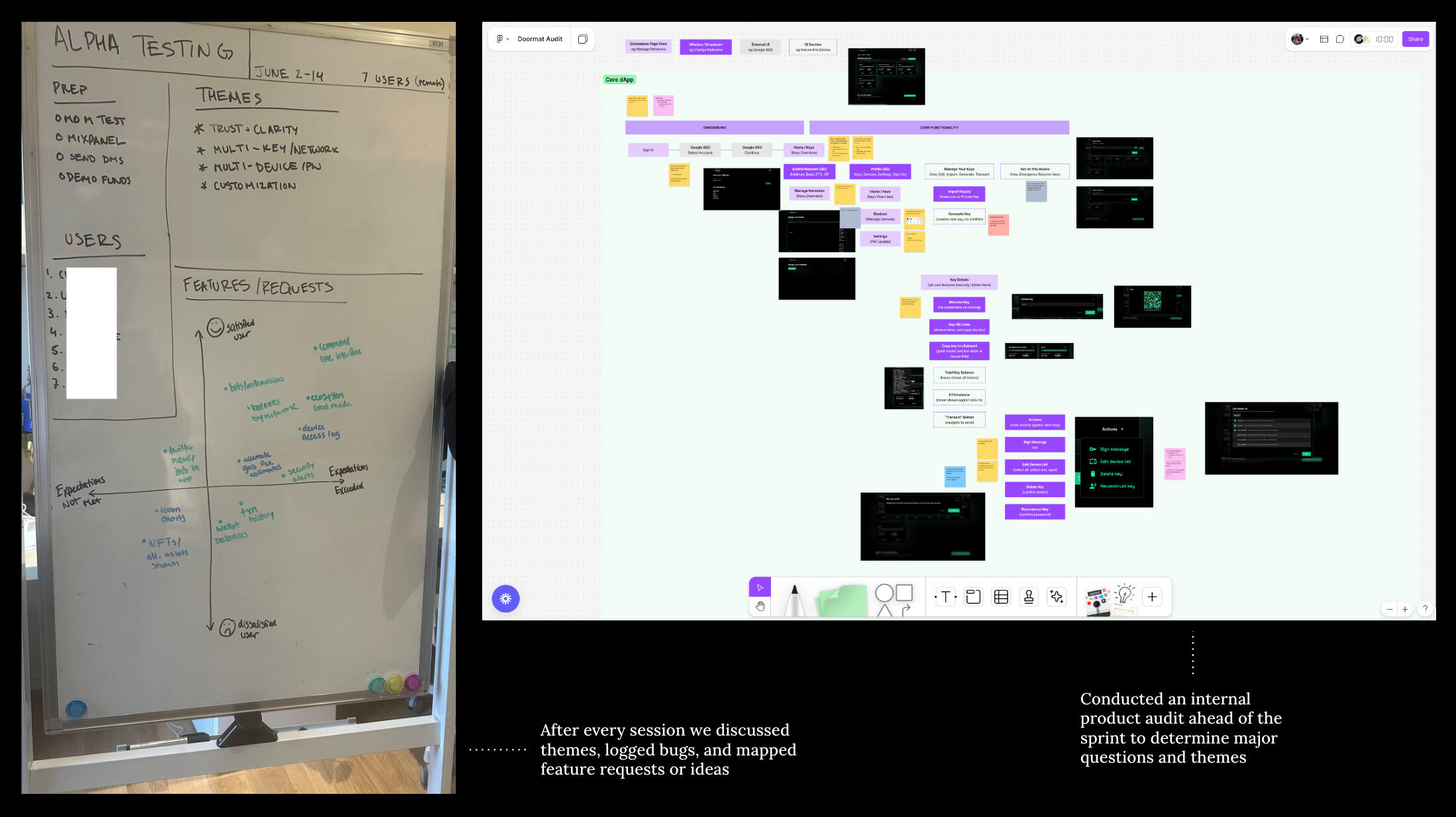 Doormat was a powerful multi-key crypto wallet—but early users found it disorienting. Key actions were buried, onboarding lacked context, and users struggled to explain what the product actually did. Despite receiving $50 in demo funds, fewer than 10% returned after setup.My goal was to clarify the experience without diluting its advanced functionality. We ran seven alpha walkthroughs, implemented Mixpanel, and used insights to map three strategic paths forward: quick UX fixes, a light redesign, or a full overhaul. We began with light-weight changes that could be layered and scaled, allowing us to move fast while earning space for more structural redesigns.